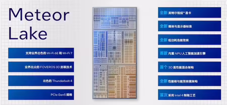 英特尔在 9 月 20 日的创新活动上公布了最新的 Meteor Lake 处理器,并详细介绍了 Meteor Lake 的一系列新特性,例如集成 NPU,拥有 AI 电源管理系统,续航提升 15%,而且它具备分离式模块架构,首次采用 Intel 4 工艺。