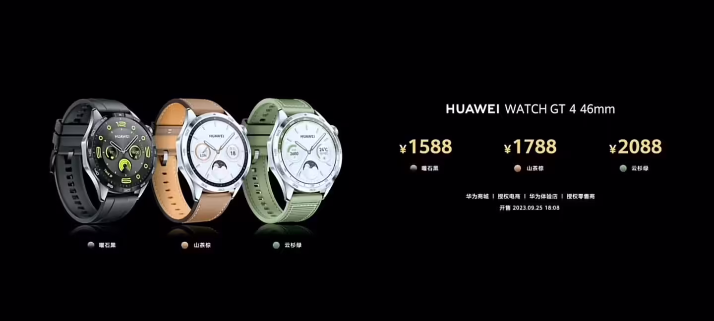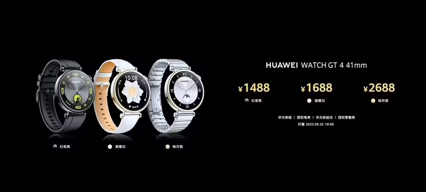 华为 WATCH GT 4 售价公布,46mm 售价 1588 元起,41mm 售价 1488 元起。