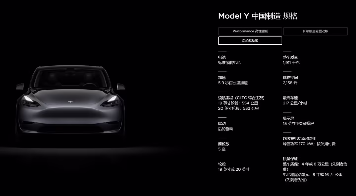 除此之外,新款 Model Y 在外观、其他配置等方面没有什么改动,附价格如下: