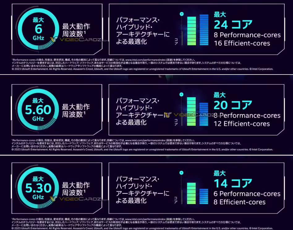 10 月 4 日消息,英特尔 14 代酷睿 Raptor Lake Refresh 处理器的日版宣传材料已经曝光,并透露了新品的简单规格。