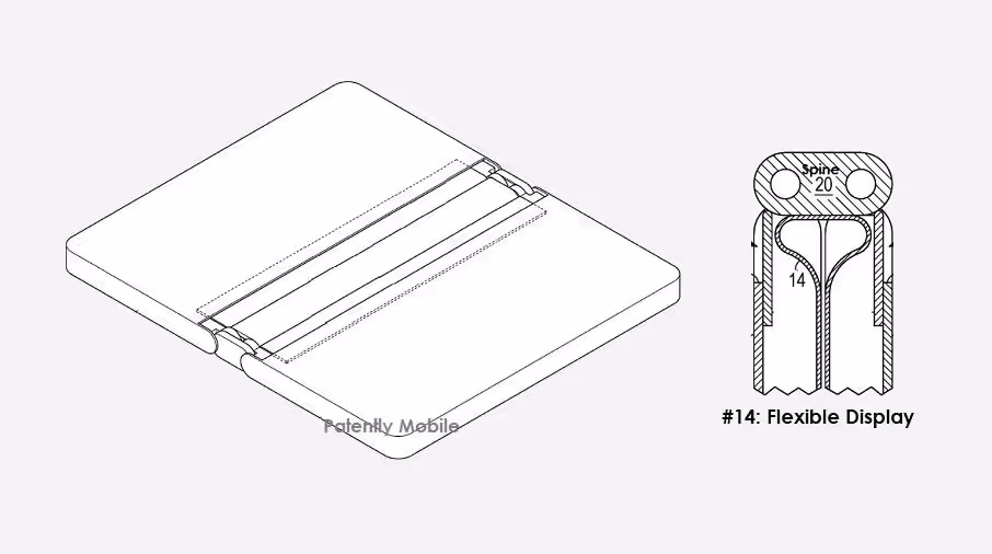 在此附上专利示意图,相比较三星和 OPPO 等手机品牌采用的水滴状设计,微软的折叠方案更像是洋葱,底部是平的,将折叠的压力转移到两侧。