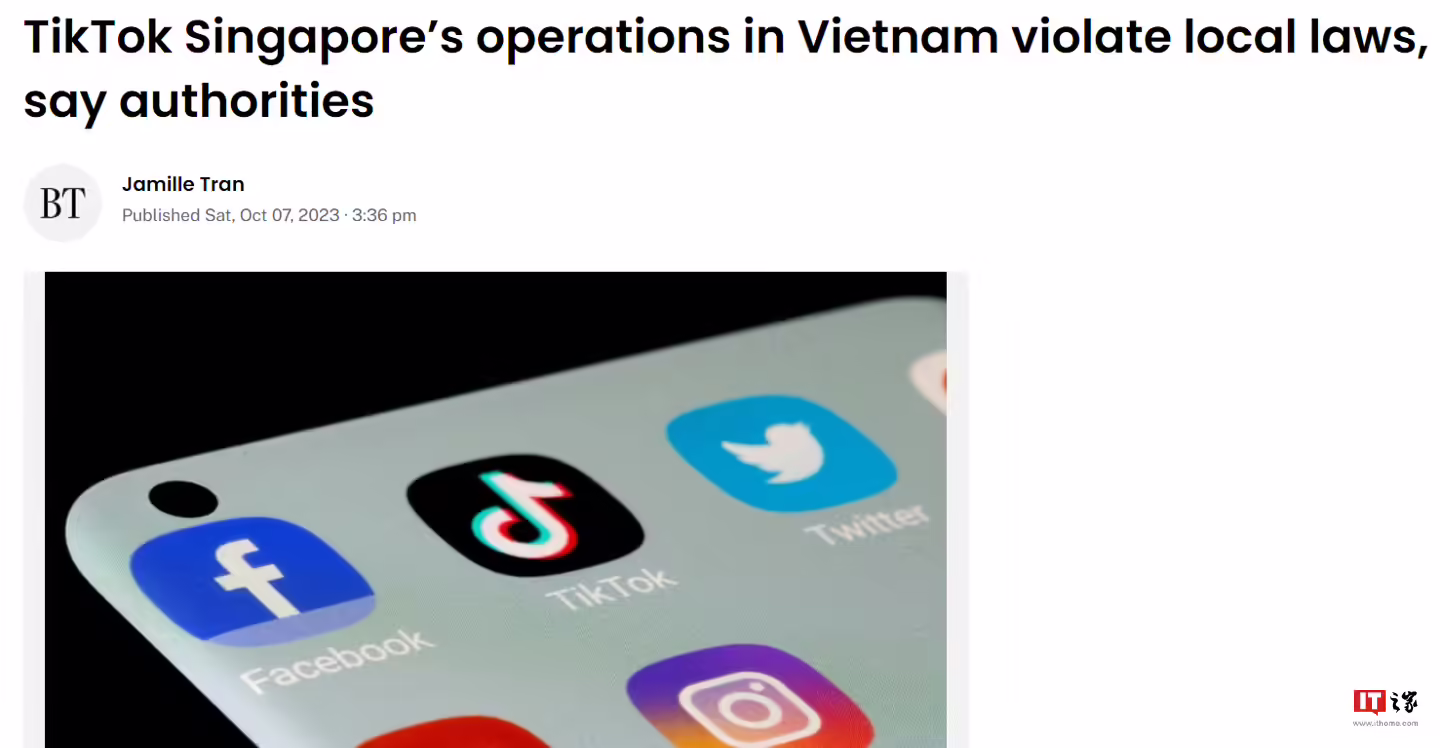 10 月 10 日消息,据《商业时报》报道,越南已完成对 TikTok 长达近五个月的调查,当局认定其违反了电子商务、信息安全和儿童保护方面的法律。 包括六部委代表在内的检查组表示,TikTok 违反了越南有关内容共享和电子商务服务的多项规定。广播电视和电子信息司司长 Le Quang Tu Do 指出,TikTok 位于新加坡的部门管理该公司在越南的服务,而不是该国的法人实体。