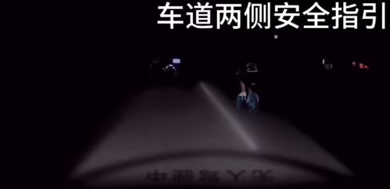 另一方面,华为智能车灯 HUAWEI xPixel 还能够通过变换的智能光毯明确表达自身驾车意图。夜晚会车时,问界 M9 能够投射出一条和车辆等宽的智能光毯,提示对向来车。在没有斑马线的路段,还可以投射出礼让行人符号,提醒行人可以大胆路过。