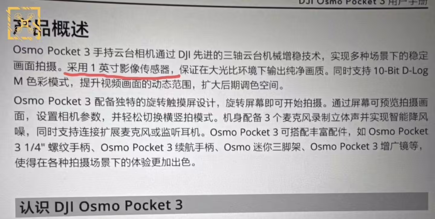 曝光的产品概述信息显示,大疆 Osmo Pocket 3 手持云台相机和 Mavic 3 无人机类似,支持 10-Bit D-Log M 色彩模式,可以提升视频画面的动态范围,扩大后期调色空间。