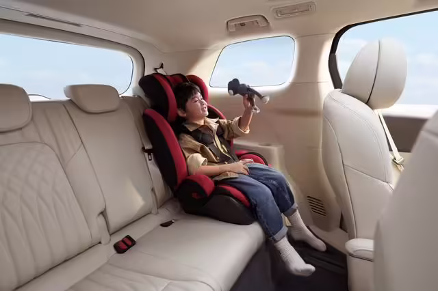 作为年代款车型,该车新增前排座椅按摩功能、顶棚及上立柱区域麂皮软包、二排座椅电动滑轨、三排 ISOFIX 接口、靠背角度调节、侧滑门双侧隔音玻璃、静音轮胎、副驾、二排座椅记忆功能、多种座舱情景模式、多种迎宾效果共计 9 种功能。 新车搭载带魔毯空气悬架 + CDC 系统,魔毯功能可实现悬架软硬主动智能可调,ADAS 系统前置摄像头扫描车辆前方 5~15 米的路面数据,提前识别特殊路况如减速带、凸起等。