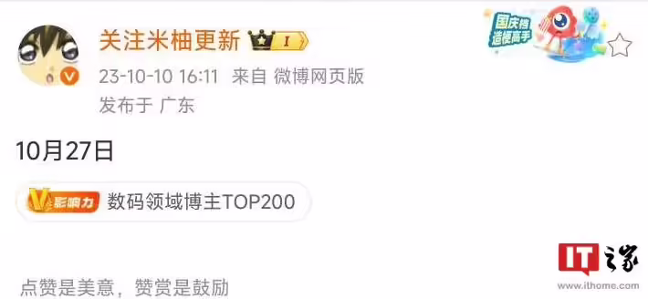 从图中可以看出,小米 14 Pro 与前代机型小米 13 Pro 相比拥有多处明显变化。该机有望用上 2.5D 直屏(IT之家注:91 Mobiles 的原文为 flat 2.5D display,但此前数码闲聊站称该机将采用极微四曲屏),整机厚度也有明显增加,背面配备了“非常大”的方形相机模组。 91 Mobiles 爆料称,小米 14 Pro 预计将配备 6.6 英寸平面 AMOLED 2.5D 显示屏,分辨率为 2K,刷新率为 120Hz;搭载高通骁龙 8 Gen 3 芯片组,配备 50MP 主摄,搭配 4860mAh 电池 + 120W 快速充电 + 50W 无线充电。 小米 14 Pro 预计还将配有屏下指纹传感器、杜比全景声以及防水防尘 IP 等级。根据渲染图推算出的小米 14 Pro 尺寸为 161.6/75.3/8.7 毫米,搭配相机模块高度将达到 13.1 毫米。该机屏幕尺寸为 6.6 英寸,采用中置打孔布局,此外,该机还将配备双扬声器。 前段时间报道,据多个数码博主和小米线下门店人员表示,小米 14 发布会将于 10 月 27 日举行。