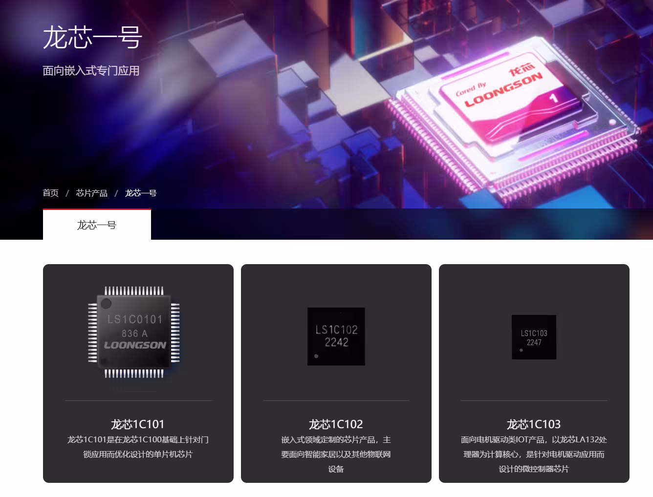 项目一期今年 4 月正式动工,建成千级洁净厂房 402 平方米、万级洁净厂房 226 平方米、恒温恒湿库房 92 平方米。 据龙芯中科技术股份有限公司负责人介绍,项目已初步具备键合封装龙芯一号芯片的封装、测试、包装出货能力,并加快构建龙芯一号系列芯片,以及电源 / 时钟芯片系列芯片的封装测试能力。下一步将逐步积累经验、储备人才,努力打造全国产的芯片封装体系。 查询龙芯中科官网获悉,龙芯一号是龙芯中科面向嵌入式专门应用开发的产品,目前官网列出了三款产品: