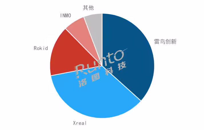 AR 零售市场中,雷鸟创新、XReal、Rokid、INMO 分列前四名,合计市场份额达到 94.3%。