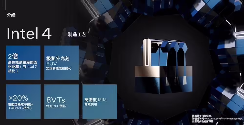 此前报道,英特尔曾在 9 月举办的 ON 技术创新峰会上介绍了 Intel 4 工艺。 英特尔表示,与 lntel 7 相比,Intel 4 实现了两倍的面积微缩,带来了高性能逻辑库,并引入了多个创新: