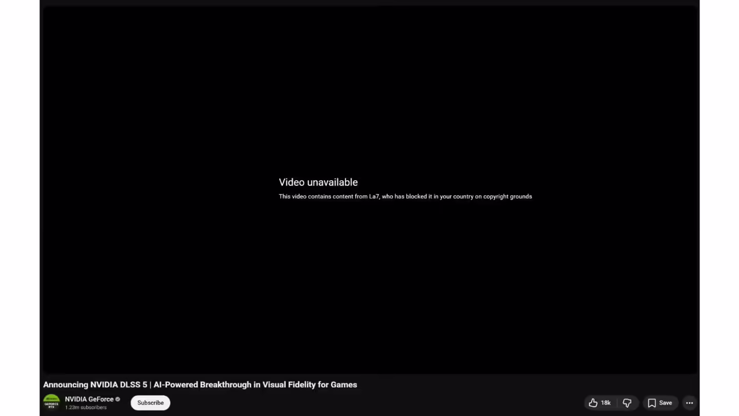 这显然是一场乌龙事件,却也暴露了 YouTube 谷歌自动审核系统的缺陷。据悉,意大利电视台 La7 在近期节目中使用了 DLSS 5 预告片段,并为此申请了版权保护。随后,YouTube 上所有包含该预告片段的视频几乎都收到了版权投诉,被判定侵权下架,提示信息如下:“视频无法观看:本视频包含 La7 的版权内容,该方已基于版权原因在您所在地区屏蔽此视频。” 英伟达官方的 DLSS 5 预告也未能幸免,在遭遇此次所谓版权投诉前,该视频已有 230 万播放量。令人担忧的是,视频下架全程似乎无人为审核干预。显然,DLSS 5 及其引发热议的预告片均由英伟达原创制作,预计此事会很快得到解决,但 YouTube 是否会针对这一案例做出回应,并承认此类虚假版权投诉在平台上普遍存在,值得关注。 |