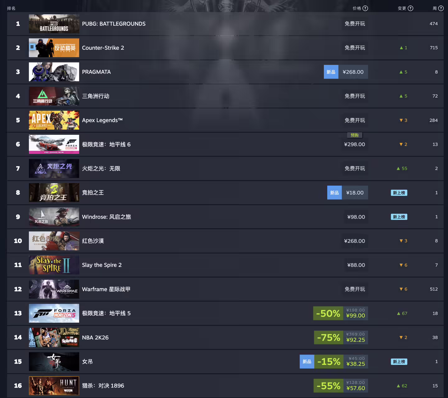 国区榜单: