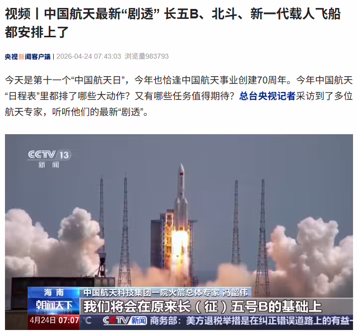 4 月 24 日消息,据央视新闻今日报道,今天是第十一个“中国航天日”,今年也恰逢中国航天事业创建 70 周年,多位航天专家带来最新“剧透”。