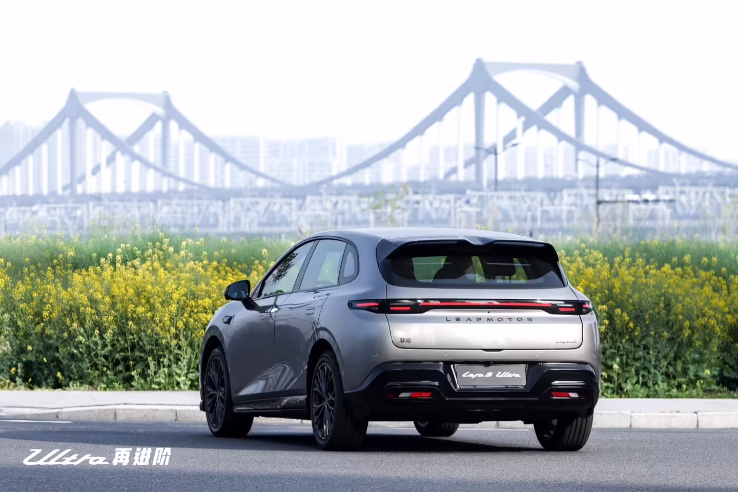 Lafa5 Ultra 长宽高为 4490/1880/1510mm,轴距为 2735mm。 外观方面,该车搭载专属运动套件,配备破风前铲、风翼侧裙、驭风尾翼及尾部扩散器。车身使用隐藏式门把手,搭配 19 英寸掠翼枪灰轮毂、哑光金属深灰卡钳,与普通版形成明显的差异化特征。