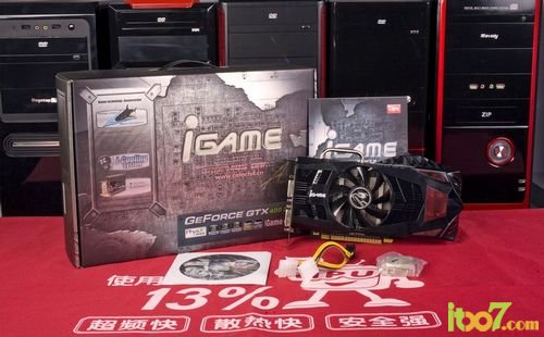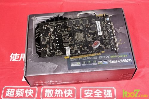 除了装配有独家的SPT超量镀银技术之外,iGame450 烈焰战神U显卡的用料杂实。首先,整卡采用黑色的PCB设计,全固态电容的设计。供电部分采用3+1相供电的设计,使用了R30的铁素贴片电感、安森美SO-8FLMOS管。显存使用的是HY 0.5ns的显存颗粒,核心频率/显存频率达到850MHZ/3800MHz。低通电路部分,保持了完整的设计;接口采用了金属屏蔽罩,进一步减少显卡信号输出的干扰。 输出方面,iGame450烈焰战神U 提供了DVI+DVI+HDMI的输出接口设计,完全可以满足大众用户的使用需求。显卡输出接口采用了导热槽设计,可以将热量充分排出,达到了更好的散热效果。
