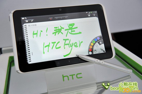 2011年7月21日,HTC正式面向中国大陆市场发布首款平板电脑产品HTC Flyer。这款产品最大的特色在于创新配备了魔幻电子笔,结合HTC独有的涂鸦触笔技术用户将可以在平板电脑上获得全新的应用体验。不仅如此,HTC Flyer还搭载了全新的专门为平板电脑操作优化过的HTC Sense,让用户在使用Flyer时真正获得“笔”翼齐飞的应用体验!