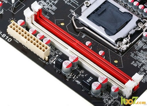 内存接口部分,斯巴达克黑潮BI-810主板提供2条DDR3插槽,支持最大8GB容量的双通道DDR3 1066/1333内存。