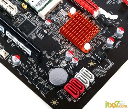 在扩展接口部分,该主板提供了1条PCI-E x1插槽和1条PCI-E x16插槽,方便用户扩展性能更加强劲的独立显卡以及安插能提供优质音效的独立声卡所需。另外,主板还通过扩展芯片额外提供了1条PCI插槽和1条MINI-PCIE插槽。