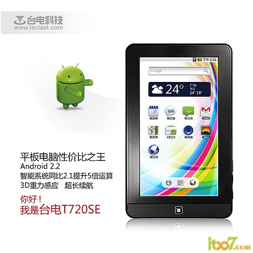 不久前,台电科技推出了一款全新的平板产品T720SE,全新的T720SE采用7寸高清屏幕,624MHz CPU,256MB DDR2内存,具备高清解码及3D加速单元,安卓2.2智能操作系统,配备有8GB超大存储空间。下面,我们就一起来了解一下这款超值的平板产品。 我们知道台电科技是目前国内最大的MP4厂商,它在研发投入方面是非常惊人的,产品品质做工用料的要求要比一般厂商高出不少,台电科技在数码领域研发投入已经有8年以上了,积累了很多丰富的经验,在平板方面,台电科技也是极为重视,台电科技是国内领先推出实用性平板的厂商,首款产品T720目前仍然是平板市场的主力产品,其稳定性和品质在都明显要比其它品牌要好,首款平板就能保持高品质和稳定性领先,这就是充分说明了台电科技的研发实力。 而T720SE则是在T720wifi基础上研发的普及版本,除了外观区别,T720SE在整体性能上与T720基本一致,但是系统则升级为安卓2.2,安卓2.2的运行速度比安卓2.1有数倍提升,而且加入了很多新特性。此外,T720SE还有多方面的改进,下面让我们具体了解下它的主要特性:台电T720SE平板电脑的采用了ARM(微处理器)+DSP(数字信号处理器)+GPU(图形处理器)的三核心架构,整体性能大幅跃升,内置256MB DDRII内存容量,软件运行流畅度显著提升。强大的三核心方案令台电T720SE可流畅播放720P高清视频,更好的加速游戏程序运行。 台电T720SE采用最新的Android 2.2智能操作系统,程序运行速度比2.1提升5倍以上,具有最好的软件兼容性,内置全新的网页浏览器可获得更佳的上网体验,支持重力感应等新特性,运行速度更快捷。拥有超过30万款应用程序可以使用,包罗万象,无论是上网、新闻、游戏、邮件、聊天、办公、娱乐、电子书、教育、医疗健康、工具等等各种应用都极其丰富,覆盖生活的方法面面。 无线WiFi功能是台电T720SE平板电脑的标准配置,你可以轻松利用家中、餐馆饭店、机场车站、电信等处的无线热点进行无线上网,畅游网络世界。 台电T720SE底部有标准的USB插入接口,具备USB HOST主机功能,可以直接插上标准的U盘等USB设备,读取内容和程序,更可以直连3G无线上网卡,直接浏览WCDMA或者CDMA网络,无需再拖一根USB线缆,非常方便。 台电T720SE配备了7.0英寸800*480高清液晶屏,屏幕清晰度高,上网能看更多内容,无需频繁拖动,看电影更清晰逼真,看书、看杂志、玩游戏效果都会更加出色,7.0英寸既有足够的显示面积,又可单手、双手轻松握持。 台电T720SE系列平板电脑均内置3D加速度传感器,可以根据手持机器的方向自动调整屏幕方向,同时也支持重力感应的游戏和应用。台电T720SE内置高清硬件解码单元,可以流畅播放720P高清分辨率的高清电影视频。 超强电池续航能力,支持移动上网5小时以上。黑色时尚外观,全黑色钢琴漆效果时尚酷炫外观,无论是自用还是送礼都非常合适。 小编点评: 总的来看,仅为499元的台电T720SE实在太超值了,它拥有的能力特别是上网、看电子书、看高清视频方面,与售价数千元的国外品牌平板比毫不逊色,但是价格只有后者的几分之一,我们知道平板的主要用途就是上网及看电子书,从这个角度说,买台连MP4价格都不到的台电T720SE是非常超值的选择。 另外,台电T720SE保持有台电一般的高标准设计和品质,其设计、用料做工这些都不是一般小品牌能比拟的,你如果现在想买个便宜的平板,那就考虑一下台电这款超值的T720SE吧。 (小熊在线 :浊夕) [参考价格] 499元 [商家名称] 昆明兴捷联 [联系方式] 13308711688 [联系地址] 昆明市圆通北路127号云大晟苑12楼1216室(佰腾数码广场B座) [网购地址] http://aoc.it007.com/ |