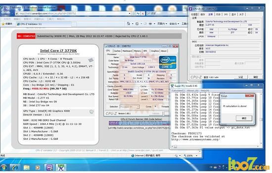 英特尔一直遵循着钟摆策略,孜孜不倦地更新着TA的处理器。正当我们还在被SNB Bridge处理器性能折服的时候,英特尔按照原计划更新了第三代Core架构处理器:Ivy Bridge。该处理器采用的是最新22纳米,同时更新了HD核显性能。下面看看玩家网友为我们带来Ivy Bridge平民级风冷超频体验。 i7-3770K采用22纳米工艺,TDP只有77瓦另外K代表不锁倍频,因此可以实现轻松超频。由于处理器的默认频率较高,同时支持睿频功能。最高可以自动超频到3.9GHz,所以超频目标定在5GHz,下面是z77主板的设置。 进入主板BIOS,主板型号是战旗C.Z77 X5 V20。首先找到处理器参数设置。 七彩虹战旗C.Z77 X5 V20上超频是一件容易的事,开机按“DELL”键进入BIOS(全中文的)进入“处理器设置”倍频45即45X100=4.5GHZ。5GHz则需要把倍频调节到50。 当倍频加到50后,要适当给处理器增加电压。 完美5G达到, 7.363S跑过SuperPi。 换上3星神条,最后处理器飙升到5.3GHz!!Superpi也突破6秒的大关!! 从测试可以看到,基于22纳米的IVY Bridge具备极好的超频能力,配搭上最新的Z77主板简直就是如虎添翼。另外,Intel的新处理、新芯片让超频越来越简单。在不加压的情况下4.5GHz可以轻松达成,只需要“轻轻”调节倍频即可。我们可以看到,英特尔这种明确的用户需求划分十分有效,超频的用户无需再为外频烦恼了。