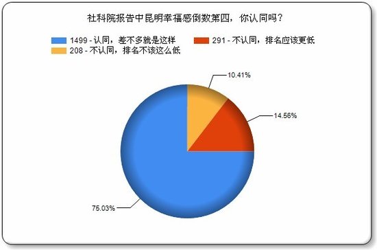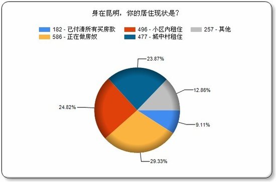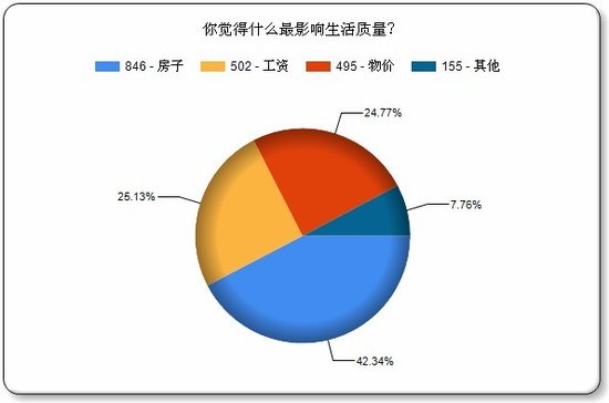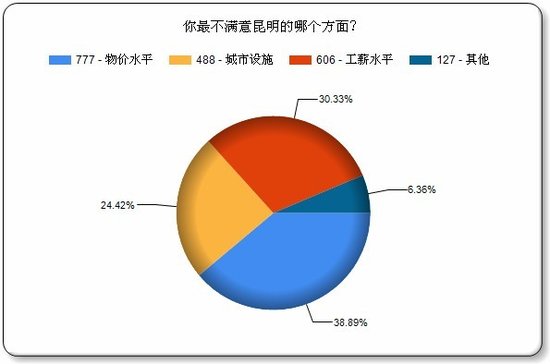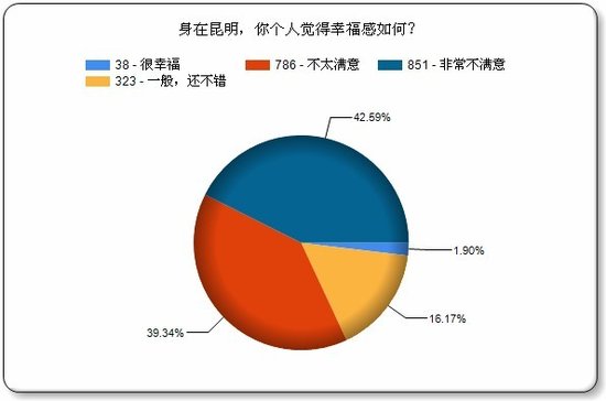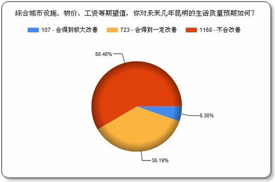 (腾讯房产讯)首都经贸大学联合中国社科院发布的《2012中国城市生活质量指数报告》不久前公布,其中主观满意度排名中,昆明得分位列第32位,在全国35个城市中居于倒数第四的位置。 在以往各种城市幸福感评选中,昆明均名列前茅,从2007年到2010年连续四年荣膺“最具幸福感城市”称号。就在2010年,昆明还赫列全国最具幸福感城市第四名,然而,两年后,这一排名却发生了“惊天大逆转”,昆明居民幸福感在全国排名中惊人地倒挂第四名。 城市,这个人类最后的栖息地,无时无刻不在影响着现代人的生活,他的一点一滴都与他的市民关联着。遥想多年前,春城空气清新,滇池清澈见底,昆明稀疏的街道上走着慢悠悠的市民,那是让全中国都羡慕的春城。可如今,日益攀升的生活成本,日益加速的生活节奏,拥挤的交通道路,令人诟病的城市规划,依然高企的房价等问题不断困扰着昆明市民。是什么拉低了春城的生活质量,是什么影响了这座城市居民对幸福感的认知,人们对这个城市有什么样的期望?带着这些疑问,腾讯房产对广大网友在线发放了调查问卷,从7月3日早上9:00调查问卷上线起,到7月4日早上9:00,1999份调查问卷全部填完,最终收到1999份有效问卷。可见,网友是多么关心自己生活的城市,以及自己的生活。 网友认同昆明幸福感倒数第四 部分网友认为排名应该更低 调查结果显示,针对首都经贸大学联合社科院报告中昆明幸福感倒数第四的排名,超过四分之三的网友表示认可,而近1.5成的网友则认为排名应该更低,认为排名不该这么低的网友的则仅有一成多一点。之前有网友质疑过社科院的“倒数第四”这个结果,但从腾讯调查的结果看,这一结论并无什么问题。 当然,不管是社科院的报告,还是腾讯房产的报告,都属于民调,不能作为唯一参考,对一个城市幸福度的衡量应该以多个客观指标为标尺,而居民的感觉往往是主观性强过客观性。 超七成昆明人觉得自己不幸福 物价与工资成众矢之的 房子成生活质量第一指标 工资与物价并驾齐驱 昆明近半数人租房住 超二成人城中村租房 超九成人认为房价影响幸福 超六成人幸福感受房价影响很大 家是一个人心灵的港湾,是人一生的栖息地,无论在哪个地方,家都至关重要,而中国人更是自古就有很强的家庭观念。什么是家?是亲情,是温暖的热水和床,是其乐融融的团圆饭……不同的人对家有不同的注解,但反映在具体物质上,它都只是一套房子,而是否能够拥有房子不光取决于自己的收入,还关乎房价。 此前有过很多关于房价是否影响幸福的讨论,但也是众说纷纭,难有统一的答案,对此,昆明的网友又是怎么看呢?据腾讯房产调查结果显示,95.1%的网友都表示房价影响幸福,其中,63.71%的人认为房价对幸福感影响很大,而认为房价基本不影响幸福的人仅有4.9%,还不到5%。 超九成人认为昆明房价高 超六成人认为太高 大部分人对昆明未来持悲观态度 不满昆明高物价 |
