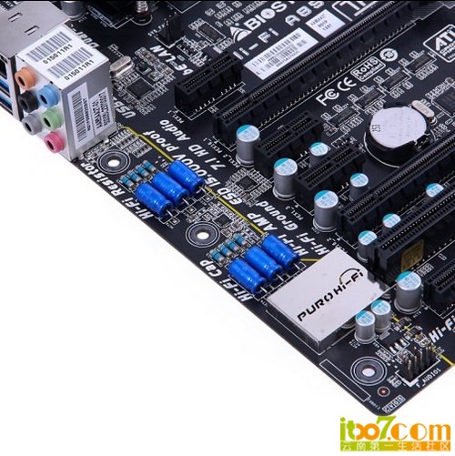 供电部分,映泰Hi-Fi H77S采用6相供电设计,全固态电容,Mosfet覆盖了独立散热片,进一步保证主板长时间使用下的稳定。