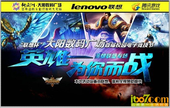 腾讯游戏携手大阳数码广场为大广昆明玩家带来2012年终英雄联盟盛宴《2012联想杯大阳数码广场英雄联盟争霸赛》火热开赛中!冠军宝座,万元奖励花落谁家?S3的改版会给选手带来什么影响?丰厚礼品等你拿,赶快来现场感受末日英雄联盟盛宴吧!