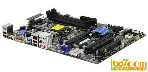 映泰Hi-Fi H77S主板采用消光黑PCB和蓝色南桥散热片奠定了它蓝黑的配色基调。做工规整,用料不错。既可以支持22nm的IVB处理器,又可支持32nm的SNB处理器。配备了4条DIMM DDR3内存插槽,可组建双通道配置。为了保证平台的稳定运行,该主板配备了6相CPU供电,并在MOSFET上安装了散热鳍片。还拥有板载开关、重启按键及DeBug LED提示灯。该主板配备了2条PCIE x16插槽,2条PCIE x1插槽以及2条PCI插槽,丰富的扩展插槽配置满足用户对扩展设备的需求。