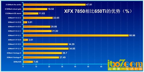 相比于千元以下的档次,千元档的显卡竞争更加激烈,毕竟千元档是真正能玩1080P的显卡,而且特效,抗锯齿都可以开不少。可以说,千元级别的游戏显卡才是属于真正爱玩游戏人士的选择。常见的千元显卡有HD6870、HD7850、GTX650Ti,HD6870毕竟属于上一代,市场上也就是一点尾货,还不如选择HD7850 1GB。今天我们就对市场上热门千元级游戏显卡:讯景HD7850魔将与GTX650Ti,在主流的1080P分辨率下进行游戏对比测试,看看在1080P下究竟谁更有优势、更具性价比!!! (XFX讯景HD7850魔将) 首先,测试的配置: E3 1230 采融B81变形金刚简版 华硕p8p67 宇瞻DDR1333 4G*2 威刚60G SSD系统盘+WD 2TB仓库盘 酷冷至尊750GX白牌 系统为:win7 Sp1 X64 显卡:超公版HDGTX650Ti 2GB XFX讯景HD7850魔将 两张卡都是属于超公版,相比而言,性能比起一般的公版卡要好一点。在实际的显卡参数设定上,GTX650Ti的显存位宽仅为128bit。相比而言,讯景HD7850魔将的规格则很不错,显存位宽高达256bit,32个Rops光栅几乎是GTX650Ti一倍。我们都知道GTX650Ti默认的频率比HD7850高一点。一般来说,电商的价格,HD7850比GTX650Ti稍微贵100到150块左右。那么作为一个价格高小半档的7850来说,是否物有所值呢? 下面,就来对比实测,两者之间的差距究竟有多少! 注意,这次测试没有特意特效全开,抗锯齿全开。考虑到部分游戏全开,这两个卡都尚未能承受,所以都是基于游戏默认设置,分辨率为1920*1080,所有和PhysX相关的选项都关闭掉。不同的设置,游戏跑分,帧数不具备可比性。此测试是两张卡,同样的平台,软件设置也是一致。 一、软件理论跑分! (理论分数) (理论跑分优势) 由上面的数据我们可以看到:在3dmark06中,频率更高的GTX650Ti被HD7850魔将拉出了1665分,7.5%的距离呢!在3dmark vantage中,尤其是1080P分辨率下面的X模式,几乎是多出了30%的性能。在3dmark11中,X模式,1080P分辨率,差距21%左右。在新3DMark中,分为三个部分的测试,没有总分。其中ICE storm属于DX9,低难度的3D测试;Cloud Gate属于DX10,中难度,而Fire Strike属于DX11,高难度。而测试结果显示,两者的差异随着3D要求的提高,差距越来越大,到了DX11部分的测试,居然差距近50%。 当然,跑软件基准不代表跑游戏,而且每一代的基准多少都对其中一家的架构有利,所以只需作为一个侧面的参考。 下面就进行一下游戏的测试,看看实际游戏里面。两者的真实差距有多大。 注意,在游戏测试中,我们取游戏的平均帧数作为衡量一个游戏流畅运行的标准程度! 二、实际游戏测试! (实际游戏测试帧数) (游戏性能优势) 通过测试结果,可以看出:对早期的DX11游戏――《尘埃系列》,讯景HD7850魔将的领先优势还是十分明显的,说明讯景HD7850魔将对DX11游戏有着很好的支持。像《孤岛危机》这类对显卡要求较高的游戏,仅仅设置了中材质,GTX650Ti只有52帧,而7850魔将有69帧,还是可以流畅玩了。在《地铁2033》中抗锯齿开了四倍,但是质量仅仅开了中等,GTX650Ti仅仅跑出了39帧不足40帧的成绩,但是7850居然有近一倍的成绩,76帧已经可以很流畅地玩游戏了。在近期最为热门的游戏《古墓丽影9》中虽然只开了普通材质,GTX650Ti的表现也是有点呛了,平均64帧,然而7850魔将就好多了,近80帧,流畅玩没问题,而且我们可以选择的余地就比较大了。 排除部分游戏或者对于开普勒新架构支持不怎么好,整体来说,讯景HD7850魔将比GTX650Ti还有25-35%左右的性能优势,而价格相差100到150元,也就是差10%左右。 通过测试可以看出,讯景HD7850魔将在千元级别的主流游戏显卡中的性价比依然十分突出,是游戏玩家的超值之选!在1080P的分辨率下,游戏性能同样出色,能够流畅地运行《古墓丽影9》等最新的游戏大作,对DX11游戏支持良好,是名副其实的主流游戏显卡! |