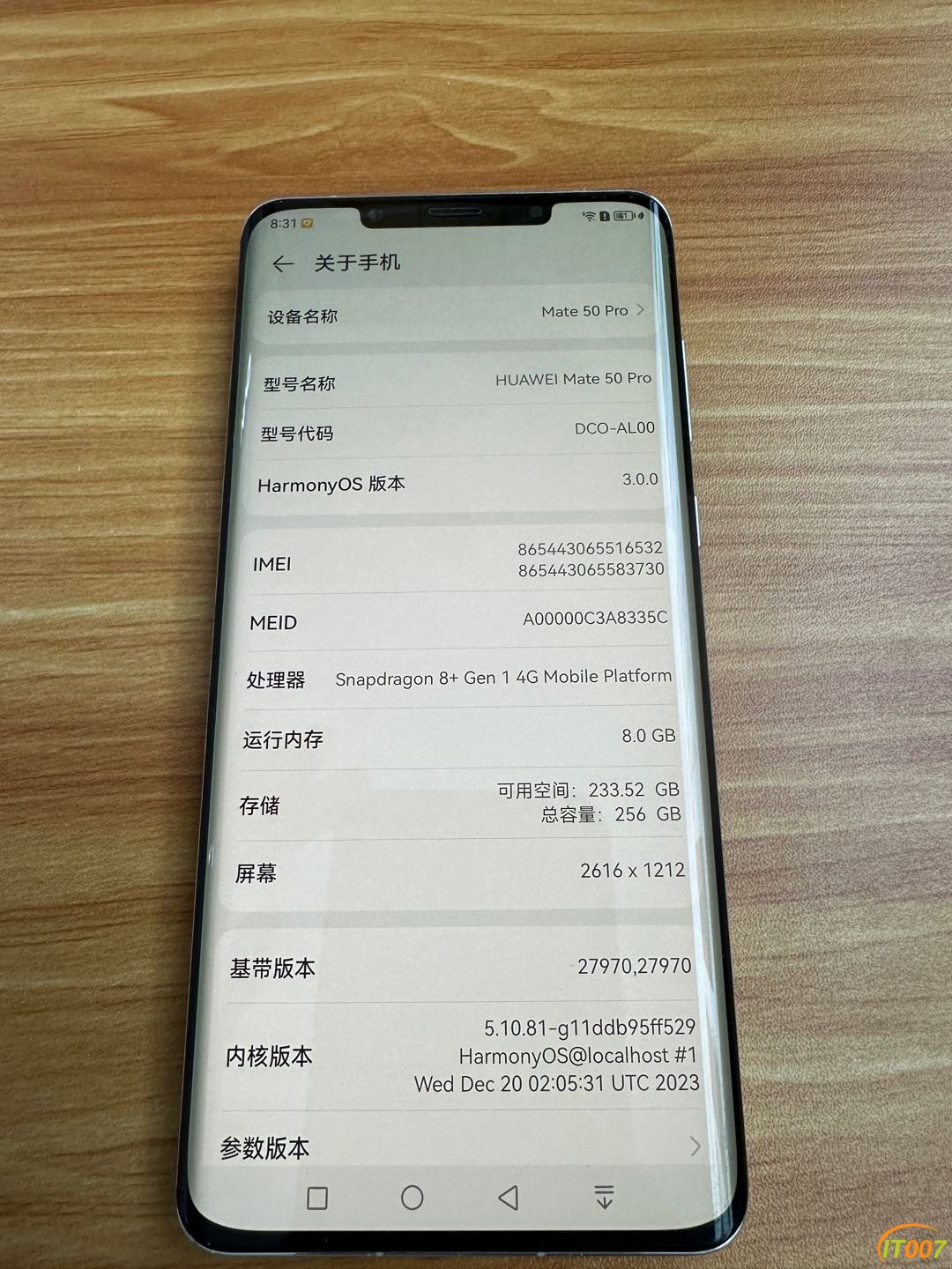 新收安卓:旗舰款华为Mate50Pro/8 256G国行三网银色小靓机、功能完美电池健康93%、质保价优特价¥1400🉐!